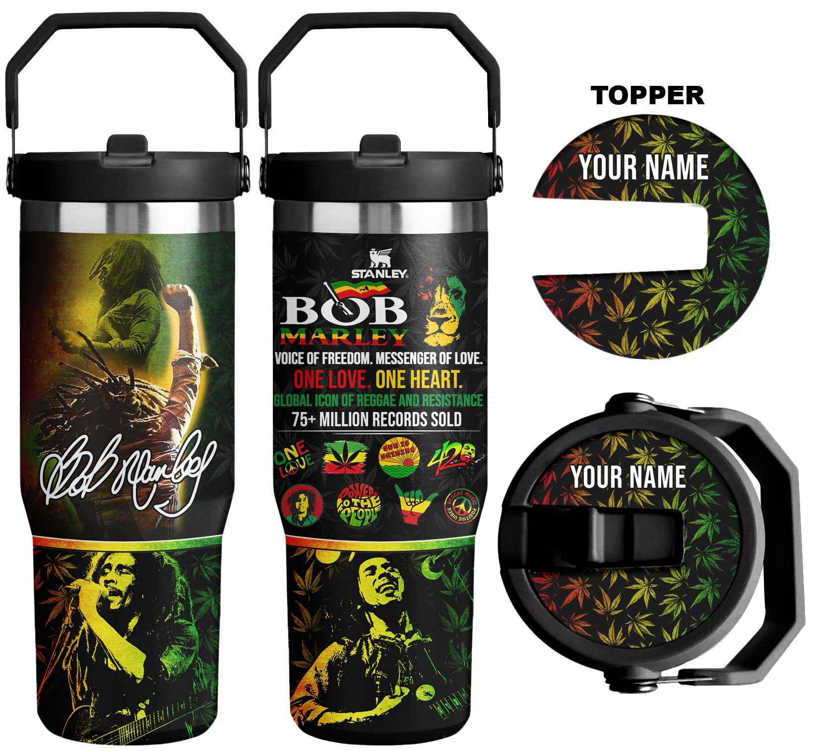 Love my Bob Marley Stanley Tumbler great Job I’m very disappointed about my Bob Marley Denim Jacket it’s not the size for a Adult I can’t wear it at all I ordered it for Adult size 3x not for the size for a child a very skinny small child so I’m very disappointed & unhappy.