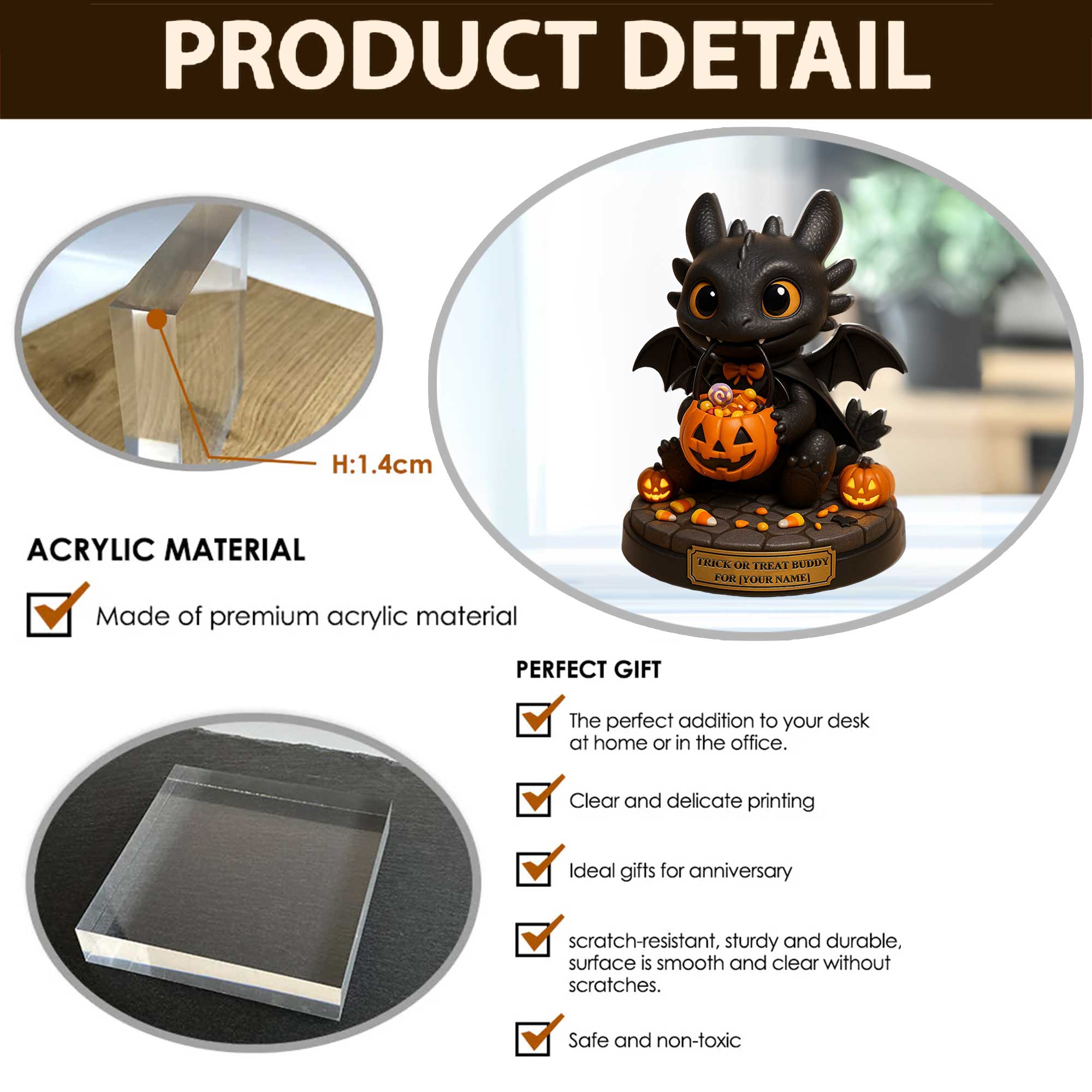 • Flat 0.55" acrylic stunning 3D-like depth