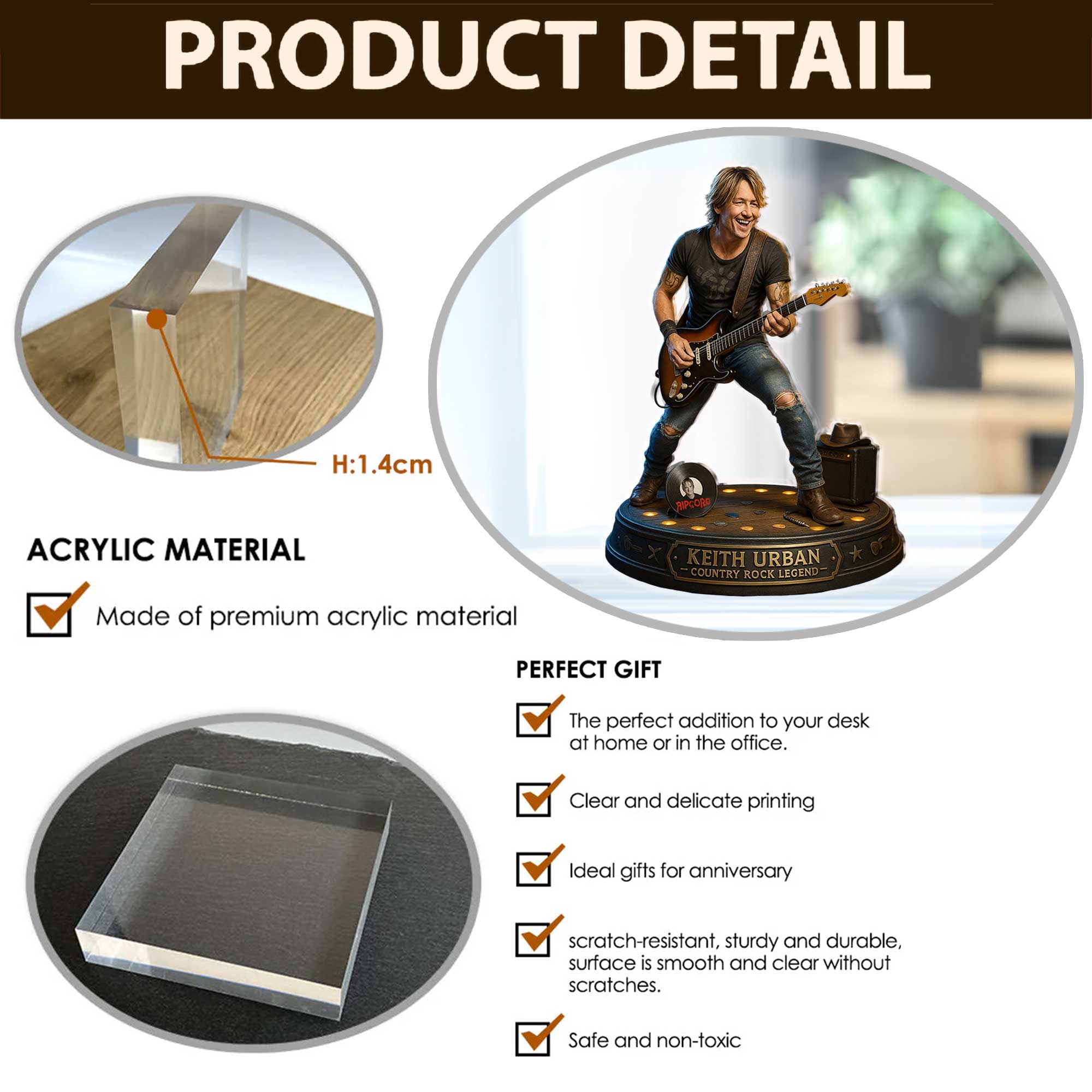 • Flat 0.55" acrylic stunning 3D-like depth
