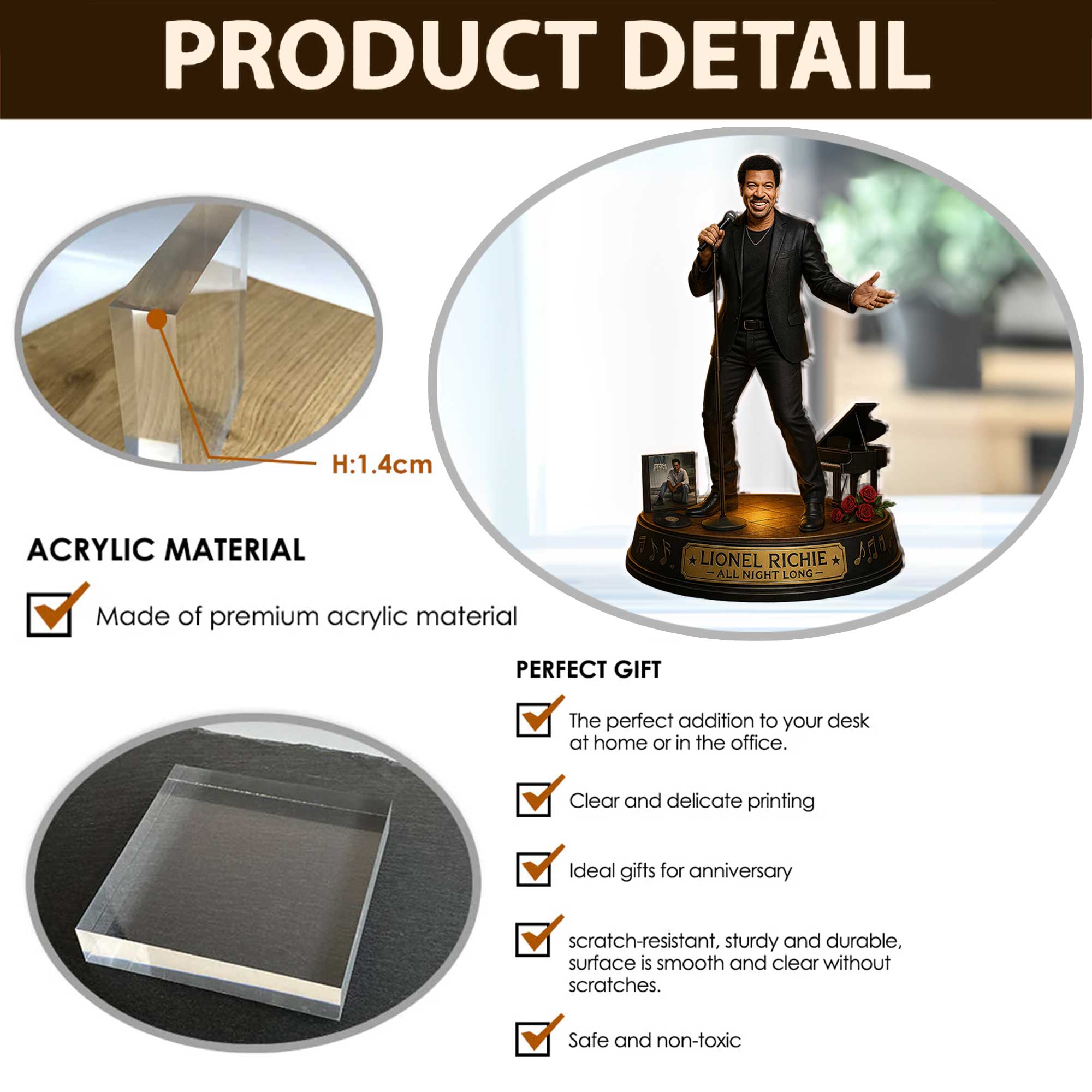 • Flat 0.55" acrylic stunning 3D-like depth
