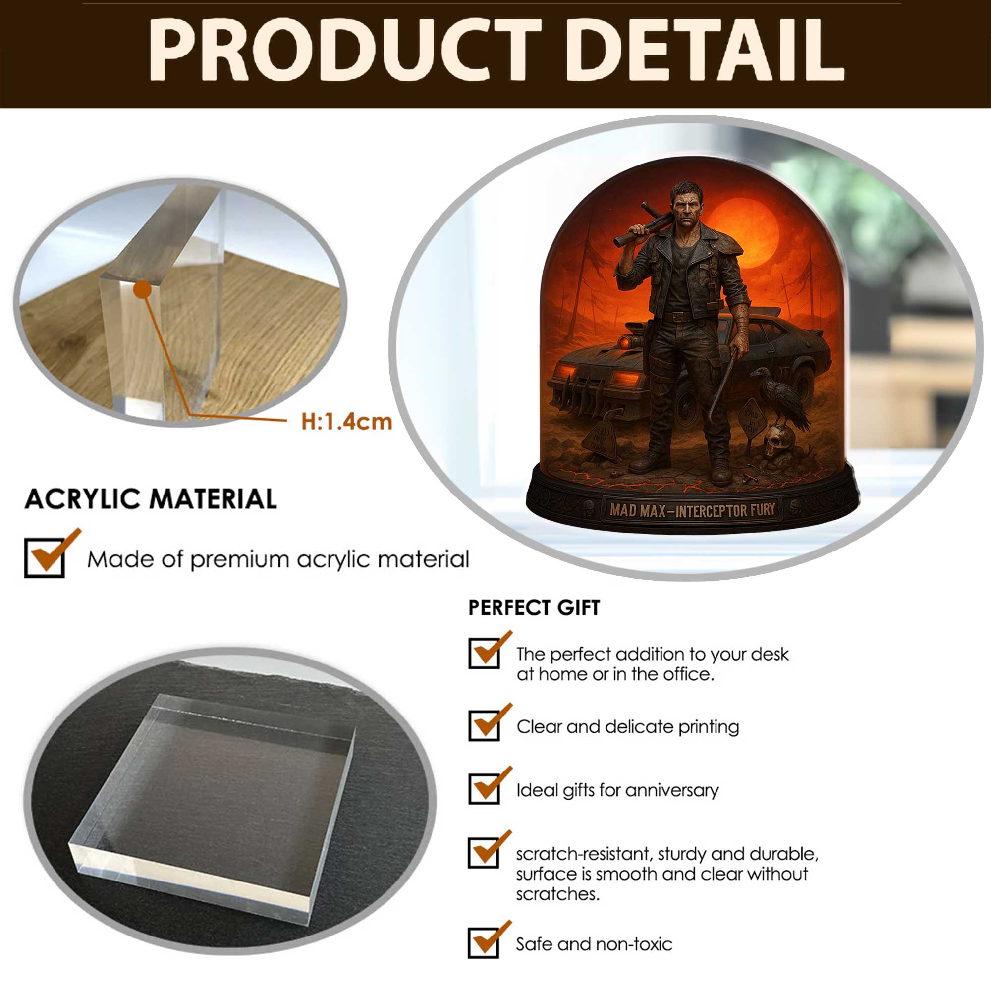 • Flat 0.55" acrylic stunning 3D-like depth
