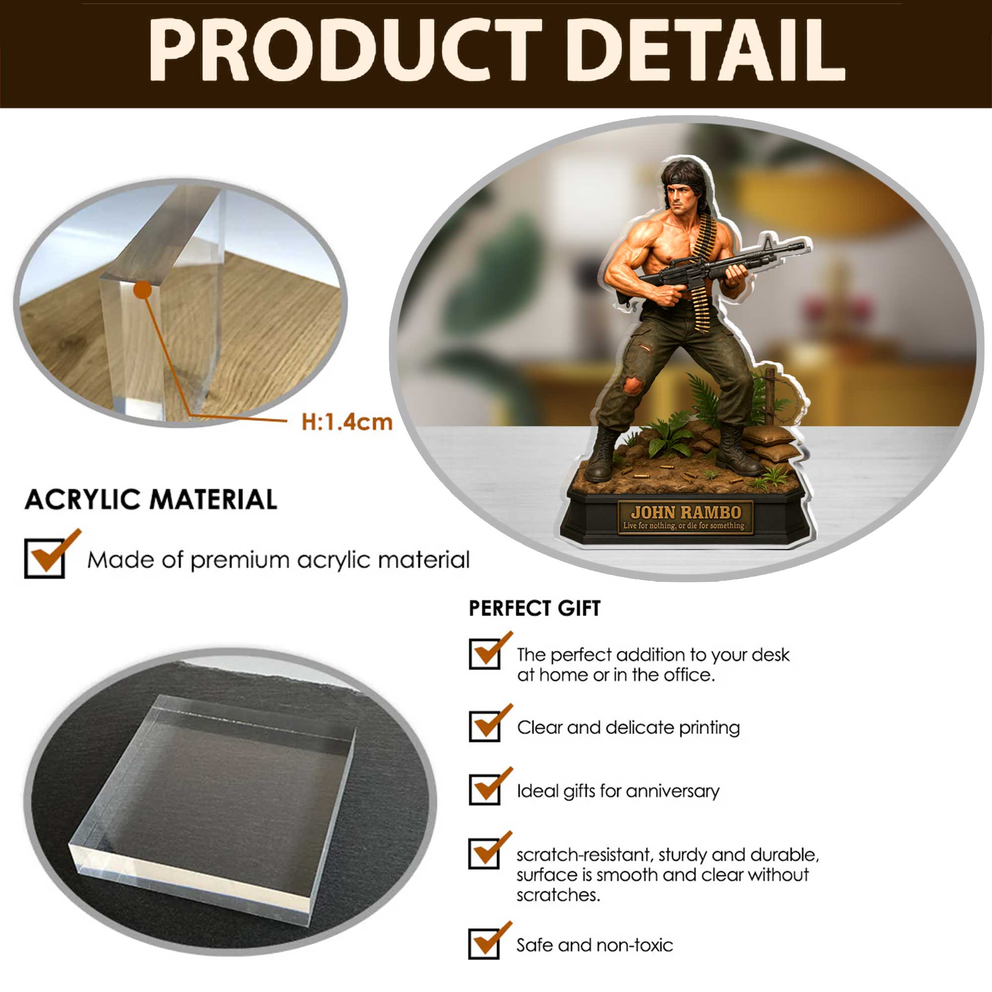 • Flat 0.55" acrylic stunning 3D-like depth