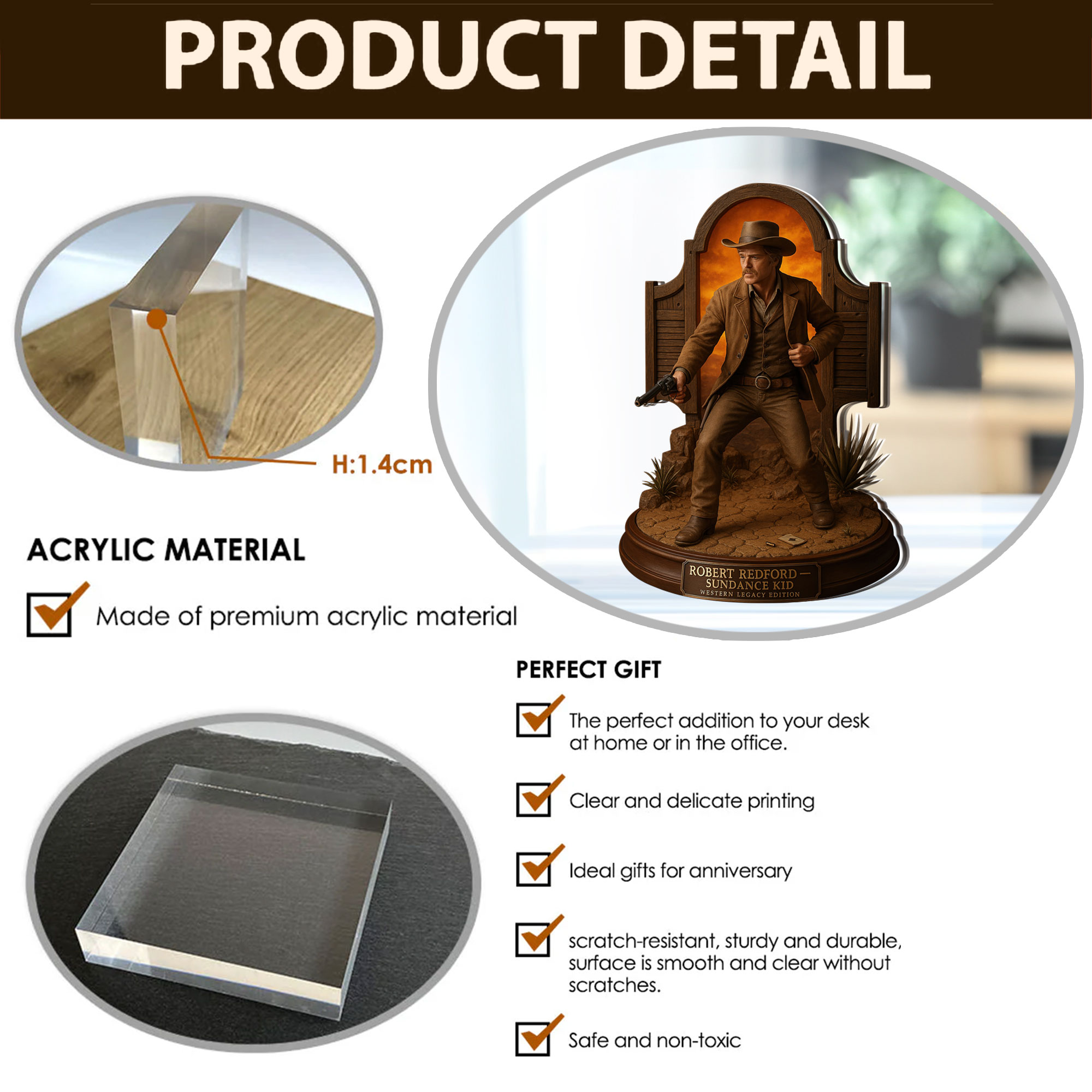 • Flat 0.55" acrylic stunning 3D-like depth