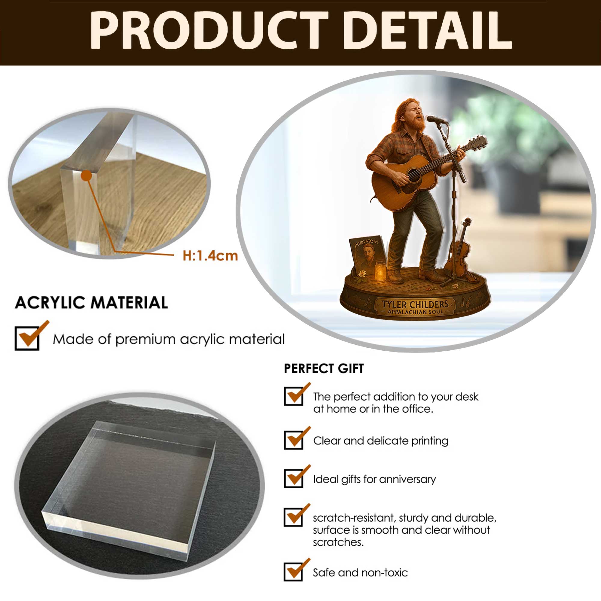 • Flat 0.55" acrylic stunning 3D-like depth