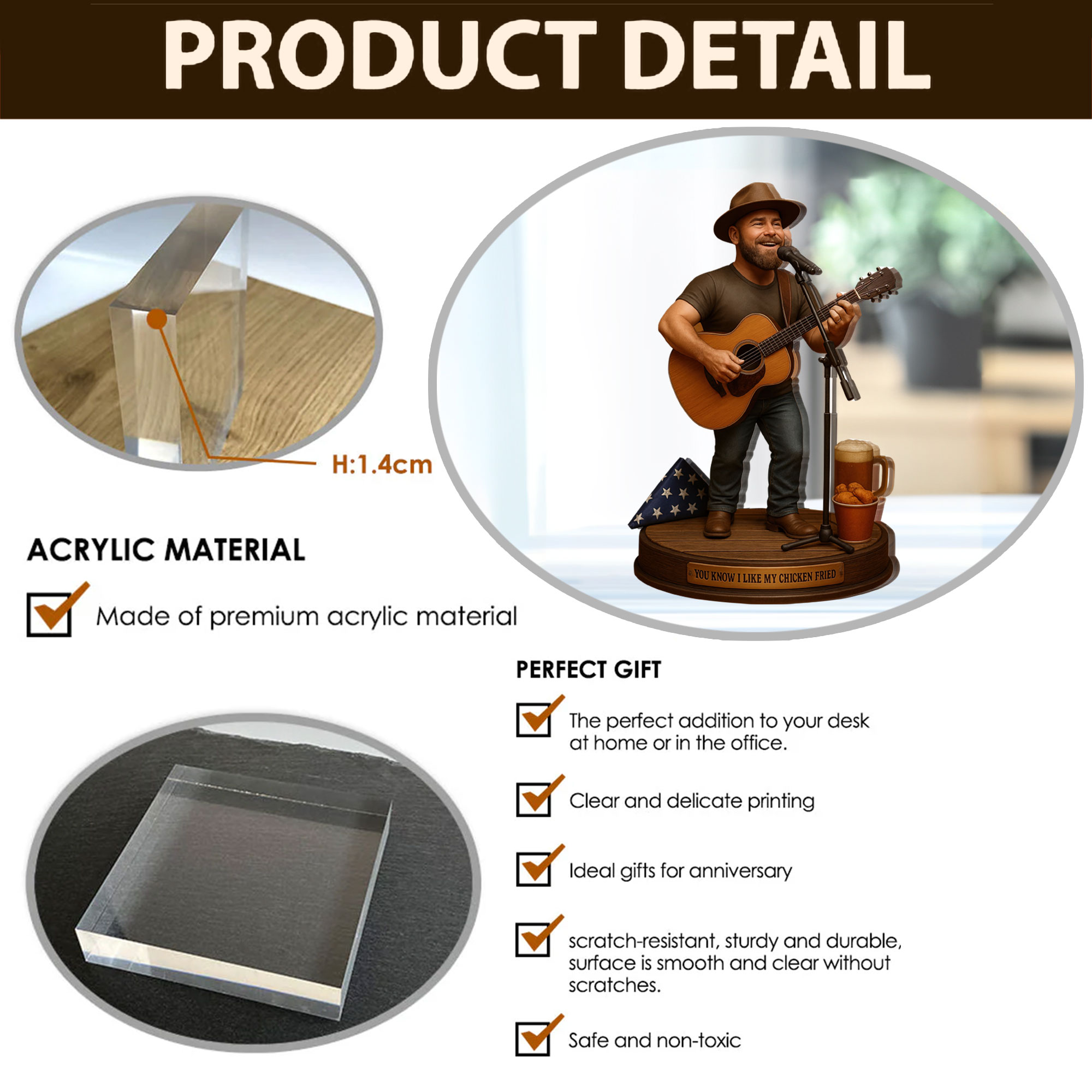 • Flat 0.55" acrylic stunning 3D-like depth